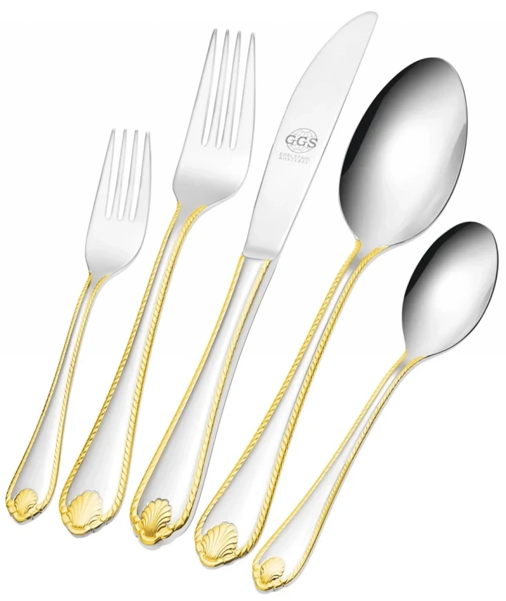 GGS Solingen Vanessa Parlak Altın Çatal Kaşık Bıçak Seti, özel anlarınızı daha da anlamlı hale getirmek için tasarlandı. Her yemek davetinde misafirlerinizi etkileyecek zarif ve şık bir sunum sağlamak için bu seti tercih edebilirsiniz.