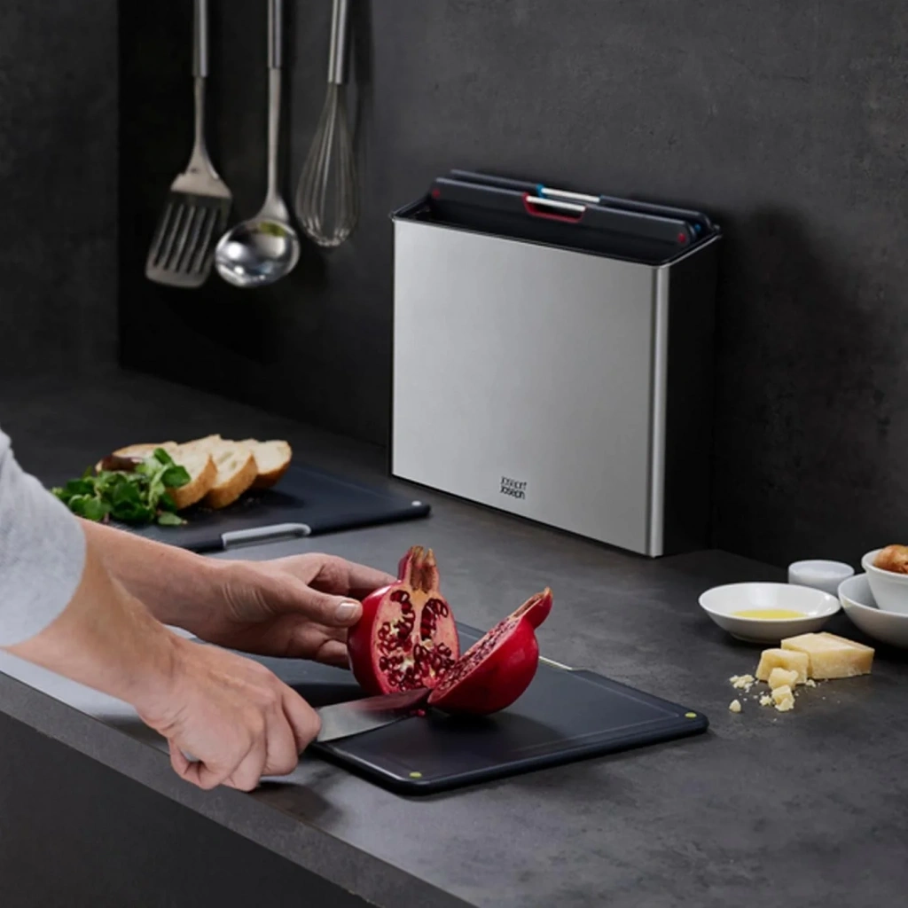 JOSEPH & JOSEPH JJ FOLIO STANDLI KESME TAHTASI 4 LÜ ÇELİK GRİ 60170 - Mutfağınızın Yıldızı!