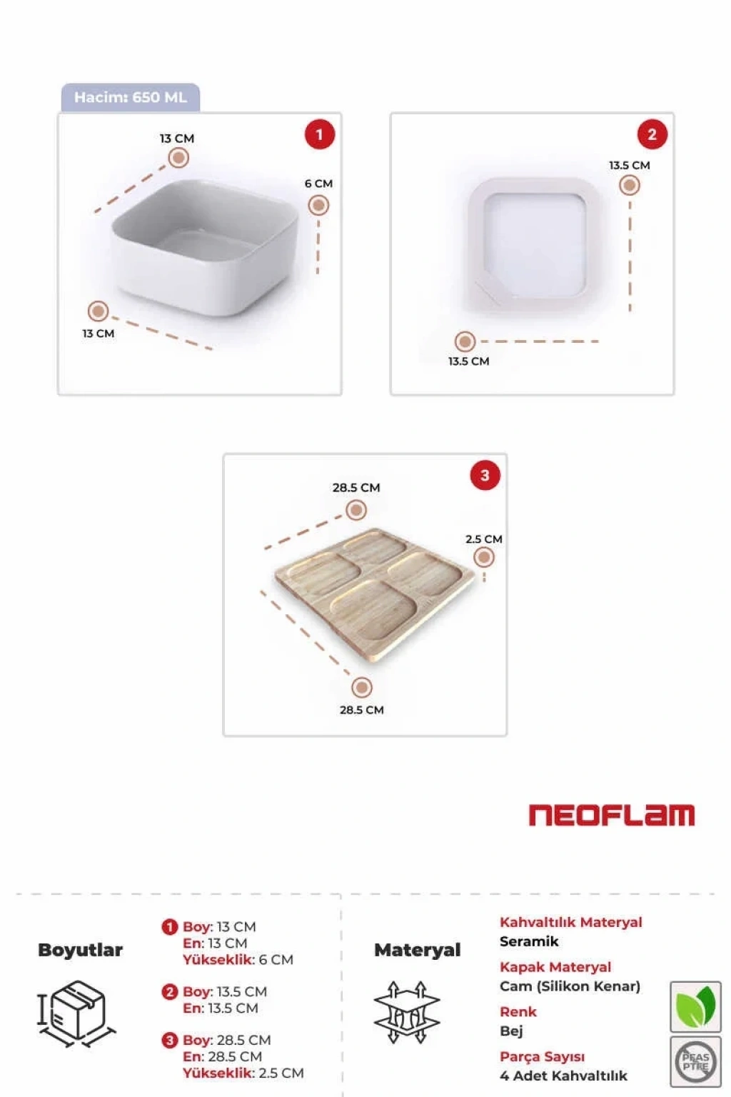 NEOFLAM FIKA ONE Kahvaltı Seti, hem estetik hem de işlevsellik arayanlar için mükemmel bir seçimdir. Şık tasarımıyla masanıza zarif bir dokunuş katarken, kaliteli malzemeleri sayesinde uzun ömürlü kullanım sunar.